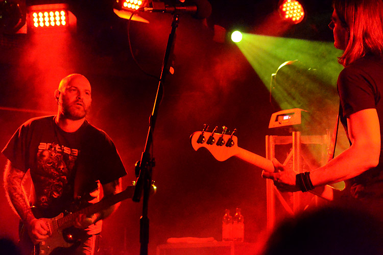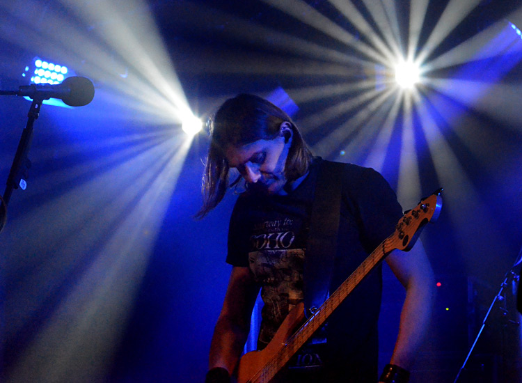 längere, gemeinsame Geschichte. Auch im Rüsselsheimer Rind gastierte die Gruppe schon oft, nur in Frankfurt selber war sie noch nicht. 2013 erschien ihr fünftes Studio-Album „Shrine of New Generation Slaves“ (S.O.N.G.S.), die dazu gehörende Rundreise startete ebenfalls – und da Menschen, die ich ernst nehme, die Band sehr empfahlen schaute ich mir RIVERSIDE letztes Jahr in der Central Station in Darmstadt an. Und war ziemlich begeistert.Deswegen musste auch der (Fast)- Abschluss der aktuellen Tour in Aschaffenburg besucht werden, knapp 13 Monate später (ein paar wenige Shows im Heimatland Polen folgen noch). Im Vorprogramm präsentierten sich die Landsleute von VOTUM (rechts), die einen ähnlichen konzeptionellen Ansatz verfolgen wie RIVERSIDE – sprich: Ein albumbeherrschendes, textliches Thema; diffizile, aber stimmige Arrangements und eine Dynamik, wie man sie auch vom melodischen Death Metal der schwedischen Schule her kennt. Bei VOTUM klang das sehr gekonnt, sehr atmosphärisch, sehr einlullend und damit auch ein wenig steril und zahnlos. Nicht, dass meine alten Animositäten wieder