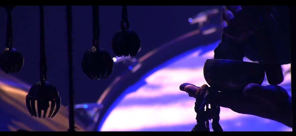 Sind das Hermann Hesse-Zitate, Märchenvertonungen oder wundersames Retro-Bestreben? Die Musik ist dabei das Gegenteil von Retro, soweit ich das beurteilen kann. Letztlich klang das durchaus faszinierend und sah auch einmal mehr beeindruckend aus im 013. Wenn die Klangschale jedoch touchiert wird, fernöstliche Saitenklänge sich mit analogen Synthiesounds treffen und der „Aal im großen Wagen und der Bär im siebten Haus“ („Himmelfahrten“) erscheint, weicht die Entzückung bisweilen irritiertem Kopfkratzen. Ist „Simsalabim“ („Sankt Damin“) große Kunst oder das neue „Hurz!“ (hier)? Wenn ich das nur wüsste.