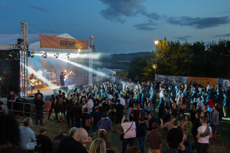 Sommerfestivals, Teil 3: Unser Fotograf Eric besuchte im idyllischen Königstein das „Rock auf der Burg“-Festival. Das eintägige Spektakel wird seit über 14 Jahren vom ehrenamtlichem Verein Rock AG e.V. mit Unterstützung der kleinen Taunusgemeinde organisiert. Nachwuchsbands aus der Umgebung geben sich zusammen mit bekannteren Formationen ein Stelldichein auf zwei Bühnen, wobei diverse Stilrichtungen von Rock und Metal gespielt werden. Insgesamt traten 13 Combos teilweise parallel auf der „Mainstage“ und der „Kellerstage“ an, die Besucher konnten sich somit ohne Pausen auf einer der beiden Bühnen die einzelnen Gigs anschauen. Außerdem galt es natürlich die Atmosphäre auf dem schönen Gelände mit herrlichem Blick auf Frankfurt zu genießen. Im Folgenden zeigen wir die schönsten Impressionen von der Veranstaltung, kommentiert vom Fotografen selbst.