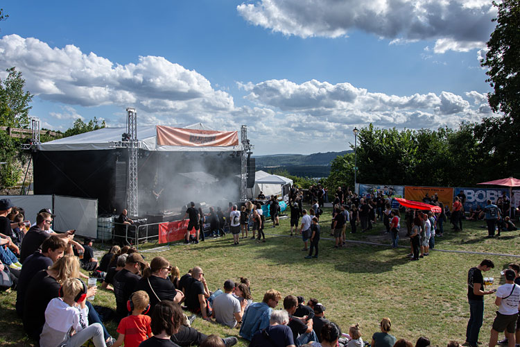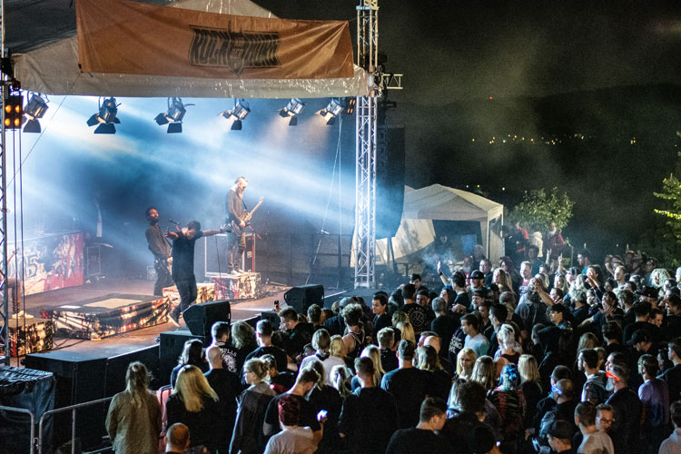 Headliner auf der Mainstage war EMIL BULLS, eine Formation, die sich schon mehr als 20 Jahre im harten Metal-Geschäft behauptet. Ich konnte nur die letzte halbe Stunde des Auftritts verfolgen, aber der Gig wusste zu gefallen. Die Münchner setzten den Schlusspunkt des „Rock auf der Burg“-Festivals, das laut Veranstalter in diesem Jahr von rund 1000 Musikfans besucht wurde.