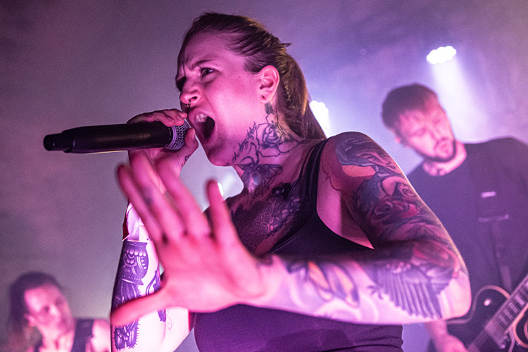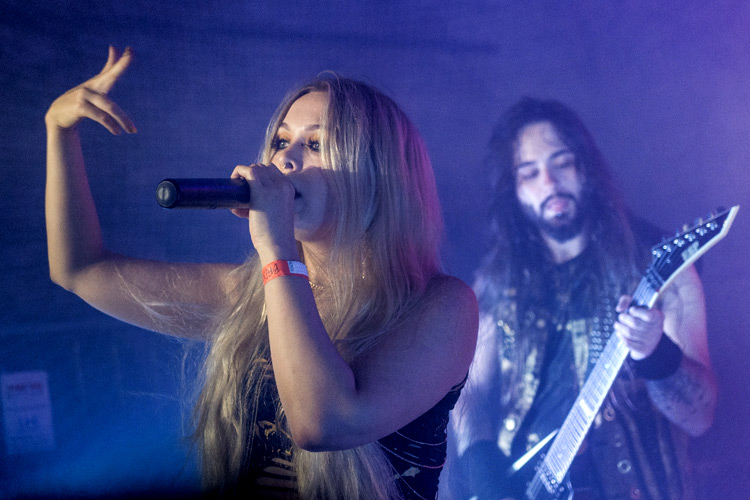 ENEMY INSIDE aus Aschaffenburg wurde 2017 von Sängerin Nastassja Giulia und Gitarrist Evan K (MYSTIC PROPHECY, EXIT EDEN) gegründet. Das Quintett hat sich in der kurzen Zeit seines Bestehens eine beachtliche Fanbase aufgebaut, gemessen an der Zahl der Band-Shirts, die ich auf dem Festival erspähte. Für die Fans war es unverständlich, dass die Formation „nur“ auf der kleinen Bühne spielte um ihre Mischung aus Dark Rock und Modern Metal zu präsentieren. In der Tat kam die Show im Gewölbe der Burg nicht genug zur Geltung. Zwar spielte die Band sehr druckvoll und routiniert, aber ENEMY INSIDE brauchen Platz, eine gute Lightshow (ohne Rauchmaschine) und Bewegungsfreiheit für eine Rampensau wie den Bassisten Dominik Stotzem. Nächstes Jahr bitte nochmal, dann auf der großen Bühne!