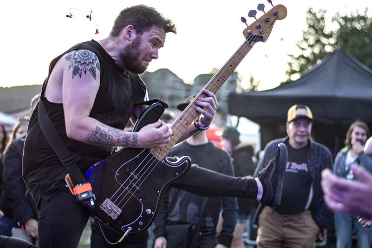 International ging es auf der Hauptbühne mit RIVER BECOMES OCEAN weiter. Die Formation aus Brighton lieferte einen soliden Gig ab; musikalisch bewegt sich das Quartett zwischen LINKIN PARK und Heavy Rock. Der sehr aktive Bassist George Donoghue, der eine Rekordzahl an Jumps fabrizierte und samt seinem Instrument durchs Publikum raste, trug einen großen Teil zu der dynamischen Show bei. Musikalisch blieb bei mir aber nicht allzu viel hängen.