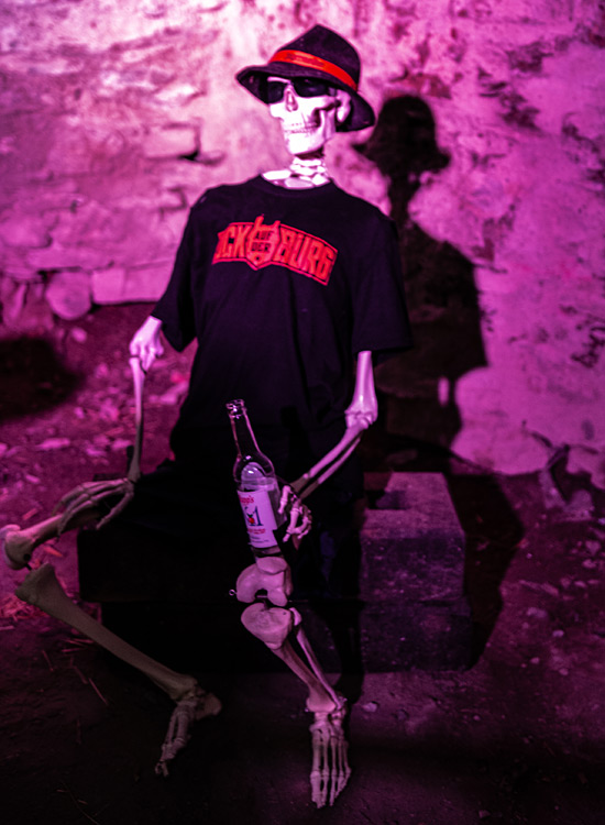 Nach dem heißen Auftakt mit FIRESTORM ging es erstmals hinunter in den kühlen Keller der Burg, wo die Festivalgäste von einem grinsenden Skelett begrüßt wurden. Dort ließen es dann BEL BLAIR etwas ruhiger angehen.