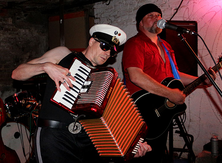 Fortan schmettern Johnny und seine Crew ein knappes Dutzend ihrer Seemannslieder, beginnend mit “You Gimme the Creeps” über die beliebten “Cast the Anchor” und “Shipwreck Blues” bis hin zum “Rockin’ Sailor” und der “Shark Attack”. Die Temperatur und Luftfeuchtigkeit im Keller nimmt gefühlt mit jeder Minute zu und schließlich meine ich, mich im Bauch eines Bananendampfers nach Übersee zu