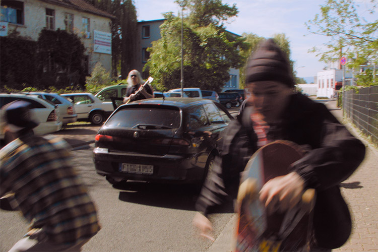 die Skateboard-Szenen am Anfang zweimal gedreht haben. Die ersten Aufnahmen sind in Wiesbaden entstanden und wir haben dabei gemerkt, dass wir ziemlich eingerostet waren, da wir seit etwa zwei Jahren nicht mehr ausgiebig geskatet sind. Das Ganze hat eher peinlich gewirkt. Also gabs einen Nachdreh im Skatepark im Osthafen. Nachdem alles im Kasten war, mussten die Szenen noch geschnitten und mit einigen kleinen Spezialeffekten versehen werden.