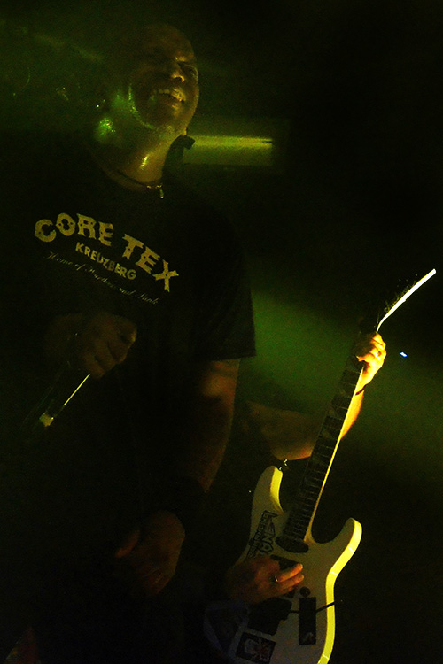 Anblick wirkte jedoch wie eine Ohrfeige. Mit Konsequenzen. Es gab heute leider keine EVIL INVADERS für uns. Aber gut, SEPULTURA wurden noch rechtzeitig erreicht. Es gab sogar ein freies Plätzchen an der Absperrung zum Fotograben, doch Bilder zu machen wurde bei 90 Minuten konsequentem Gegenlicht zur Tortur. Wie übrigens auch einen Tag zuvor bei Mark Lanegan im Frankfurter Gibson. Ist das eine neue Eitelkeit oder wird so gegenwärtig „Atmosphäre“ illuminiert? Ich