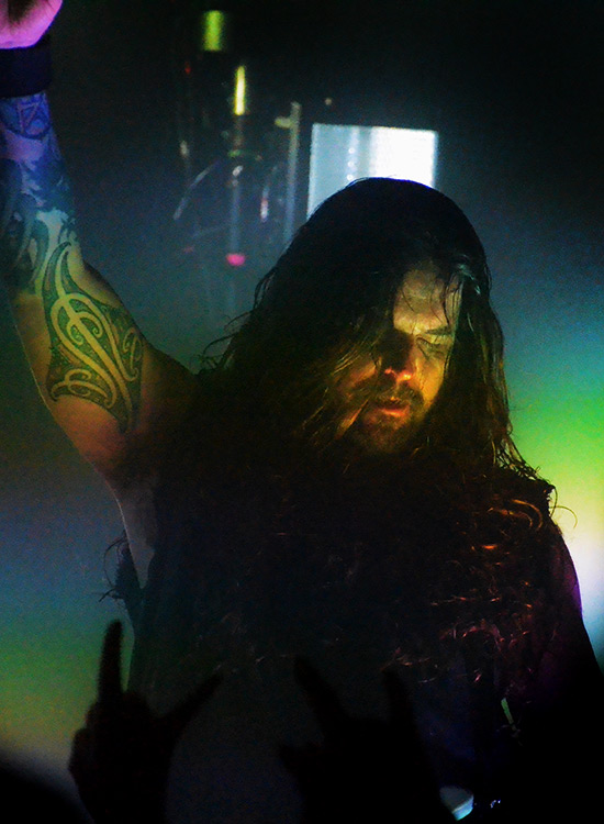 Unverzeihlich, wenn man den gestrigen Abend vor Augen hat. Die Stücke des aktuellen Drehers „Machine Messiah“ (ein Konzeptalbum über Chancen und Risiken moderner Technik) überwogen, was bei deren Klasse aber kein Problem darstellte. „Kairos“ von 2011 wurde zitiert, ansonsten gab es Lieder der Cavalera-Ära satt. „Inner Self“ von „Beneath The Remains“ (1989) sowie die größten Hits von „Arise“ (1991), „Chaos A.D.“ (1993) und „Roots“ (1996) – dem Album, auf dem SEPULTURAs Innovationskraft am stärksten war. Dass PRONG-Drummer Art Cruz die Percussion-Schlacht „Ratamahatta“ veredelte, war ein zusätzliches