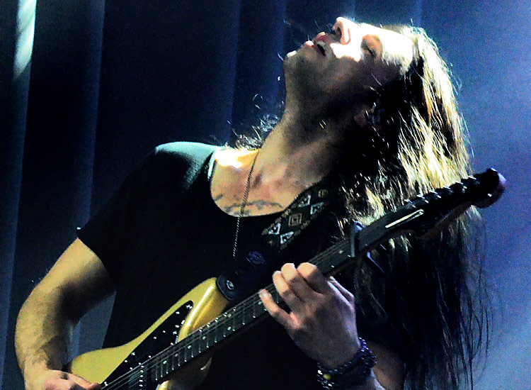 Vieles, was ich zum Beispiel an RIVERSIDE mag, bekommt hier noch ein paar Adrenalin-Schübe mehr: Fette Orchestrierungen, geniale Riffs, atemberaubende Songwendungen, tolle Arrangements und ein Killer von einem Sänger/Gitarristen in Form von Andy Schmidt. Der sprach auf der Bühne locker wie ungestelzt davon, wie schön es sei, dass es das Skaldenfest wieder gibt und bedankte sich beim Publikum für die Musik; wohl