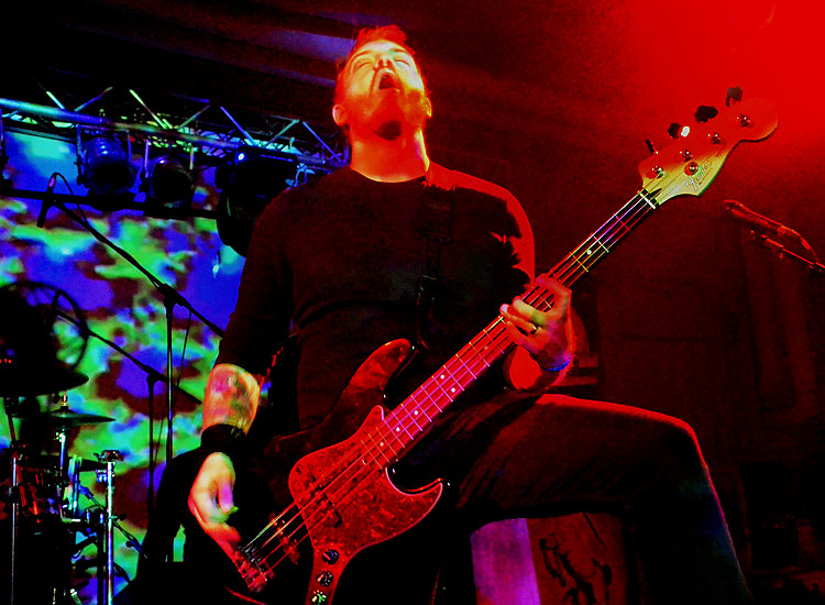 Pubikumswechsel danach vor der Bühne: Die um Einiges entspannteren MARS RED SKY aus Bordeaux, ebenfalls ein Trio mit extrovertiertem Schlagzeuger,