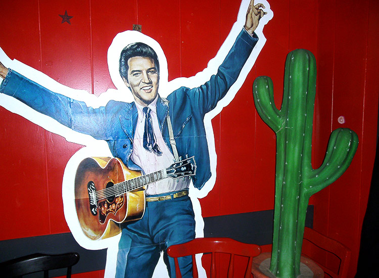 Ebenfalls nicht tot: Elvis. Zumindest als Wandbild in dieser Szenekneipe, in der leider nur noch selten Live-Musik zu erleben ist. Wo?