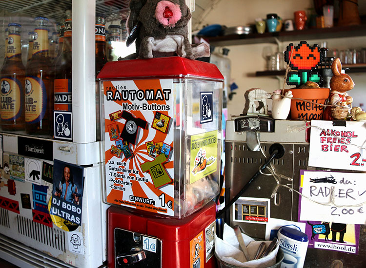 Was aussieht wie ein netter Kleinwarenladen, ist die Getränkeausgabe einer kleinen, aber sehr feinen Konzert-Location. Wo steht der Rautomat?