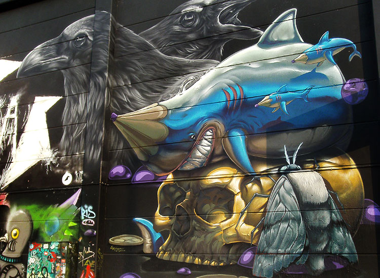 Die Fassade über der gesuchten Konzertstätte bietet immer mal wieder einen anderen Anblick, denn dort toben sich die Graffiti-Künstler aus. Wo kann zurzeit dieses tolle Werk bewundert werden?