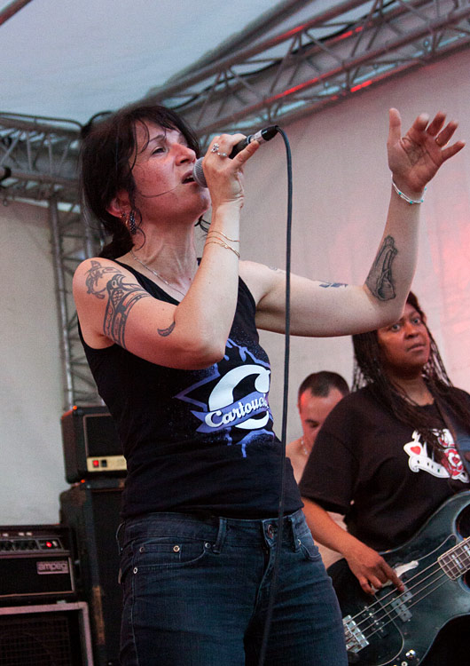 haben und zuletzt vor neun Jahren an gleicher Stelle beim Sommerfest auftraten. Beide Combos haben tolle Frontfrauen – Geraldine bei CARTOUCHE, Magali bei ihren vermutlichen Vorbildern – die sich in puncto Gestus und Gesang durchaus ähnlich sind. Ich würde gerne mal beide Bands im Doppelpack sehen. Die 2004 gegründete Truppe spielt vornehmlich schnellen Punkrock mit politischen Texten und hat im Februar ihr