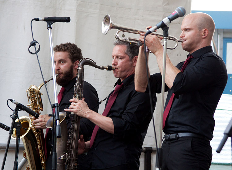 Stefan: Von CAN YOU CAN CAN hatte ich (Asche über mein Haupt) vor ihrem Auftritt beim Au-Sommerfest noch nie etwas gehört. Doch als die sieben Jungs und das Mädel dann schließlich auf der Bühne standen, erspähte ich schnell das