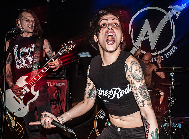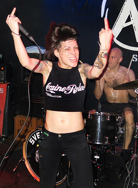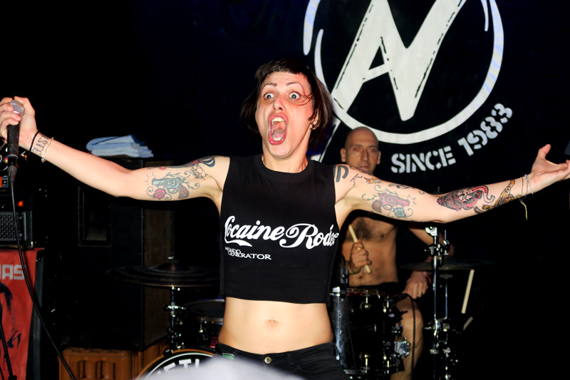 Frontfrau Isa dürfte mit dem gestrigen Auftritt gerade mal eine Handvoll Shows gespielt haben und wirkte dafür schon sehr routiniert. Musikalisch wurde 80s-Punk- und Hardcore-Bands gehuldigt, was einmal mehr die Cover-Versionen von den MISFITS („Hybrid Moments“) und von FEAR („I Don‘t Care About You“) belegten. Die