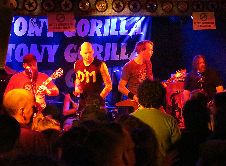 persönlich auf das Innencover jedes einzelnen verkauften Exemplars gemalt wird. Ich denke, wer sich antut, nach den Shows erschöpft eines oder mehrere von 90 verschiedenen Artworks zu erstellen, der muss schon sehr lieben, was er da tut und was er vertritt. Und das merkte man am gestrigen Abend nicht nur ihm, sondern allen Mitgliedern von TONY GORILLA an. Bitte mal häufiger in Frankfurt vorbeischauen und den Pit aufmischen.