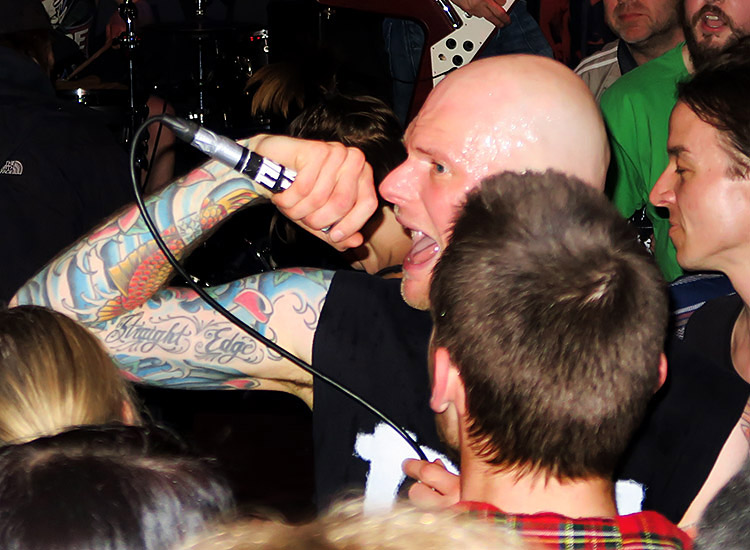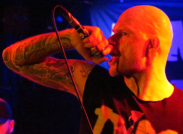 Während die Stimme des langen Schlakses mit Glatze phasenweise der des Ex-MISFITS- und SAMHAIN-Sängers Glenn Danzig ähnlich ist (wurde schon verschiedentlich geschrieben, aber stimmt halt einfach), erinnerte mich der bekennende Straight-Edger sowohl vom Aussehen als auch von seinem Habitus her an den YUPPICIDE-Frontmann Jesse Jones – bis auf die zahlreichen Sprünge, die