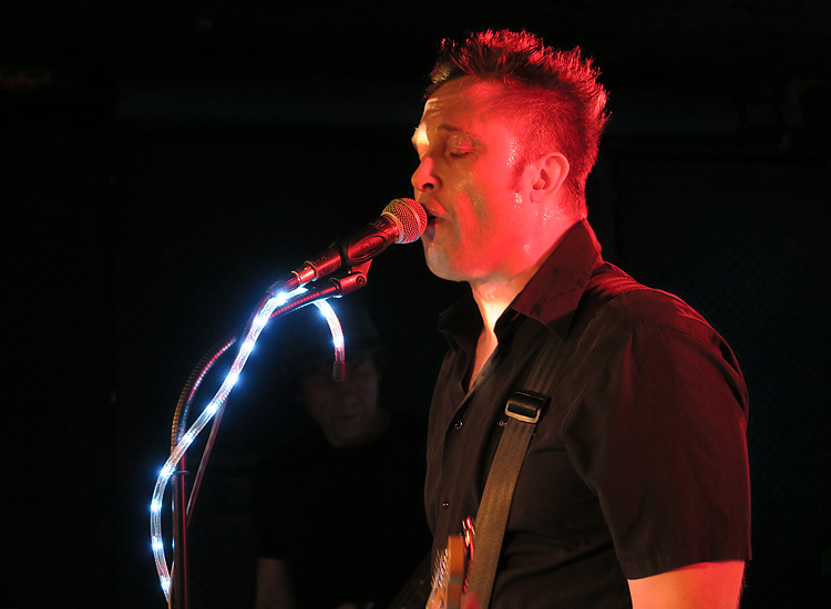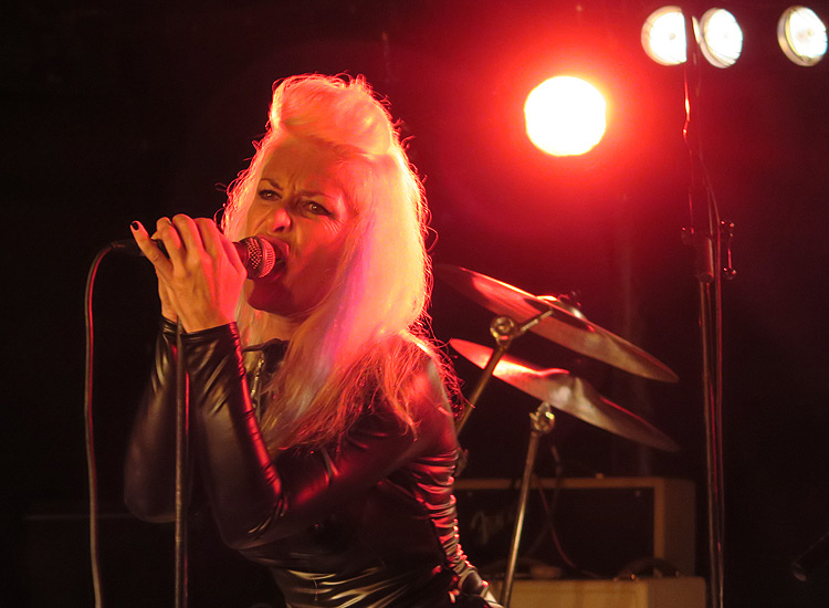präsentierte den „Diva- Punk“ mit Einflüssen von Wave, Pop und Rock’n’ Roll diesmal im eng anliegenden, schwarzen Lederkleidchen, Strapsen und mit XXL-Absätzen bewehrtem Schuhwerk. Manch einer im Publikum musste daraufhin erstmal Jacke und Pullover abwerfen – was natürlich auch an der zunehmenden Temperatur im sich etwas füllenden Club gelegen haben könnte. Komplettiert wurde die Truppe durch Routinier Tommy am Schlagzeug sowie dem Gitarristen Uwe. Am Bass stellte Darla den Neuzugang Chris vor, der bis vor kurzem noch bei WESTEND DESASTER die vier Saiten zupfte und auch dort schon Kollege des Manns an der MONKEY SUITE-Schießbude war.