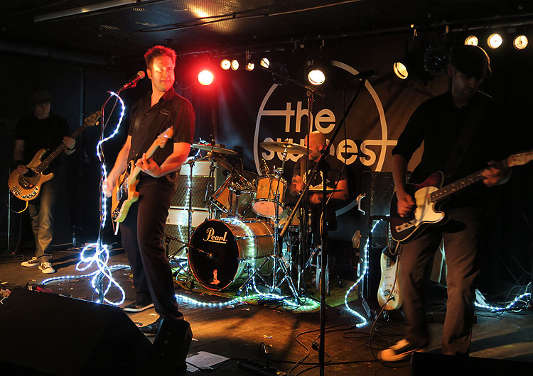 Nach der Umbaupause wurde es dann Zeit, das Licht zu löschen, die sich auf der Bühne schlängelnden Lichterketten anzuknipsen (immer wieder ein toller Effekt und prima anzusehen) und sich auf die Darbietung von THE SWIPES zu