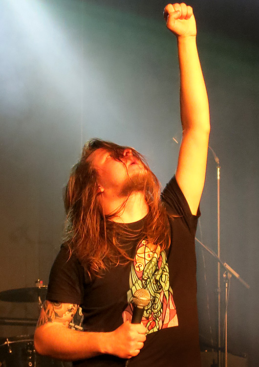 Songs vorzuweisen haben, so konnten sie doch die 45-minütige Auftrittszeit füllen, was vermuten lässt, dass bald ein vollständiges Album des Quartetts erscheint. Mir war der oftmals etwas träge und eher konventionelle Metal allerdings ein wenig zu bieder, sodass ich während einiger Lieder die Zeit für eine Stärkung an der Imbissbude vor der Halle nutzte.