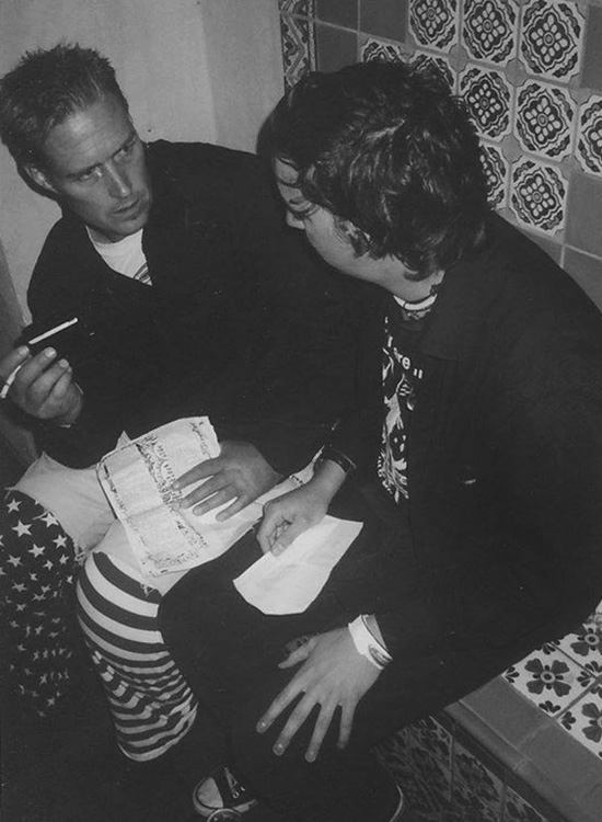 rechts: Im Gespräch mit Jason Sears (l, gest. 2006), Sänger von RICH KIDS ON LSD, Santa Barbara, 2004. Foto: Lars Wogakt