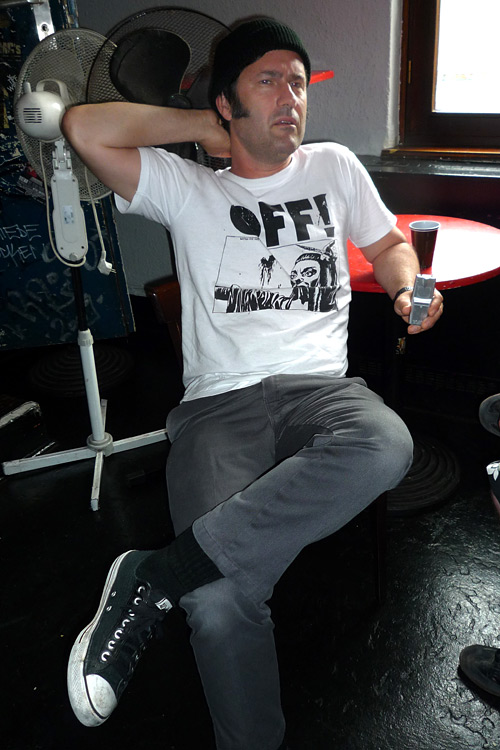 Einfach beides richtig gute Leute, mit denen man prima Bier trinken und sich allen möglichen Scheiss erzählen konnte. Mich beeindruckte, wie freundlich die waren, null Arroganz, null „So, Kleiner. Ich erkläre dir Mal L.A.-Punk, Du Nix-Checker“. Ist ja selten, dass solche „gefühlten Legenden“ einfach „down to earth“ sind und nicht den Dicken machen von wegen „Als ich Black Flag 1978 live sah, warst du da schon geboren?“. Man kennt das ja manchmal von den „Alt-Punks“. Zu allen diesen Begegnungen und Gesprächen jetzt ins Detail zu gehen, würde den Rahmen dieses Interviews sprengen, aber das steht ja auch alles in dem Travelzine.