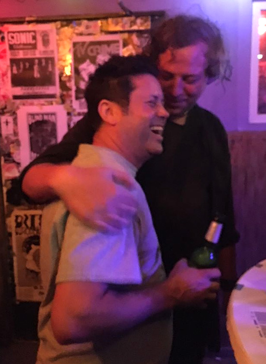 links: Mit Little Joe (Joe Raposo, vorn), Bassist von RKL und LAGWAGON, Köln, 2017. Foto: Mara Luka