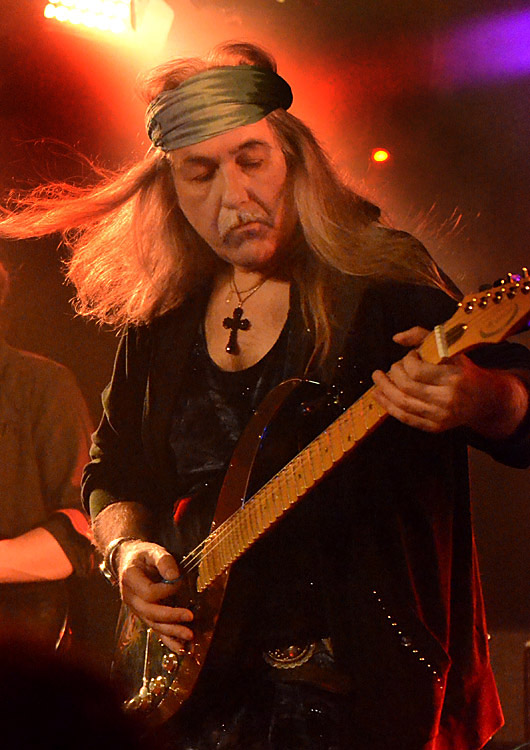 Uli Jon Roth (links), um den es hier ja eigentlich geht, war der Lead-Gitarrist ab dem zweiten SCORPIONS- Album „Fly To The Rainbow“ 1974 und löste damit den zu UFO abgewanderten Original-Lead-Gitarristen Michael Schenker ab (Bandboss Rudolf Schenker spielt auch Gitarre). Das ist inzwischen 40 Jahre her, weswegen eben dieser Uli Jon Roth, der die Band nach vier Jahren bereits wieder verließ und ELECTRIC SUN gründete, gegenwärtig auf Jubiläumstour hauptsächlich SCORPIONS- Songs der Alben von „Fly To The Rainbow“ bis „Taken By Force“ (1977) spielt. Songs, die ich spät, kaum oder bisher gar nicht gehört habe. Was ein echtes Versäumnis darstellt, wie ich heute weiß.