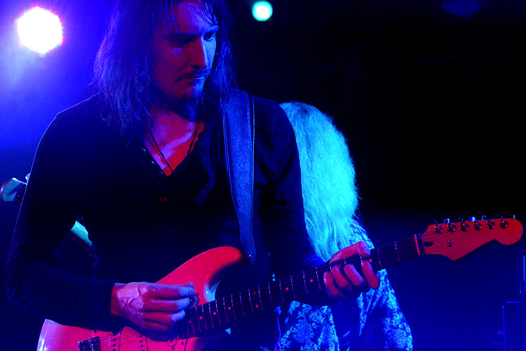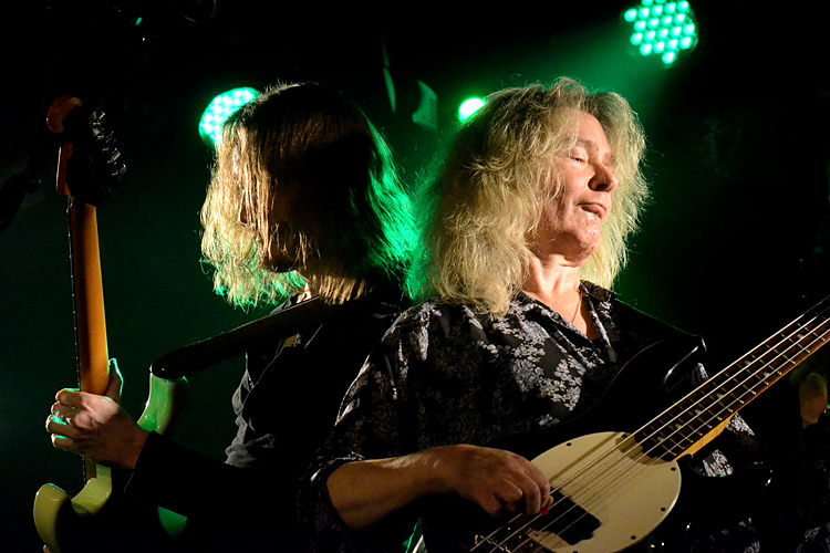 Fairness halber erwähnt sein sollte. Außerdem dabei war der ehemalige ELECTRIC SUN-Mitstreiter Ule W. Ritgen (links) am Bass und ein junger Gitarrist, den ich nicht zweifelsfrei identifizieren kann – zwar ist Roth oft mit dem Bluesmusiker Ali Clinton unterwegs (und sehr bluesig war auch das Spiel des Anwesenden) – auf den Bildern, die ich von Clinton gesehen habe, spielt er aber mit der rechten Hand Gitarre. Der Kerl auf der Bühne tat das mit der Linken.