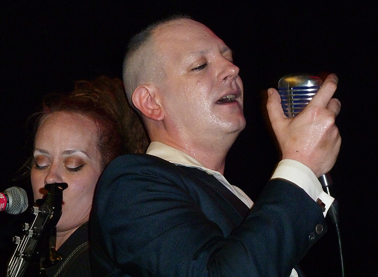 Rhythmus der Mid- und Up-Tempo-Nummern mit dem einprägsamen Gesang und dem punktgenauen Einsatz der Bläsersektion ließen die Gäste schnell in Wallung kommen. Zwischen den Stücken sorgten die kleinen Anekdoten des Frontmanns beim Luftholen für Musiker und Zuhörer für schmunzelnde Gesichter.