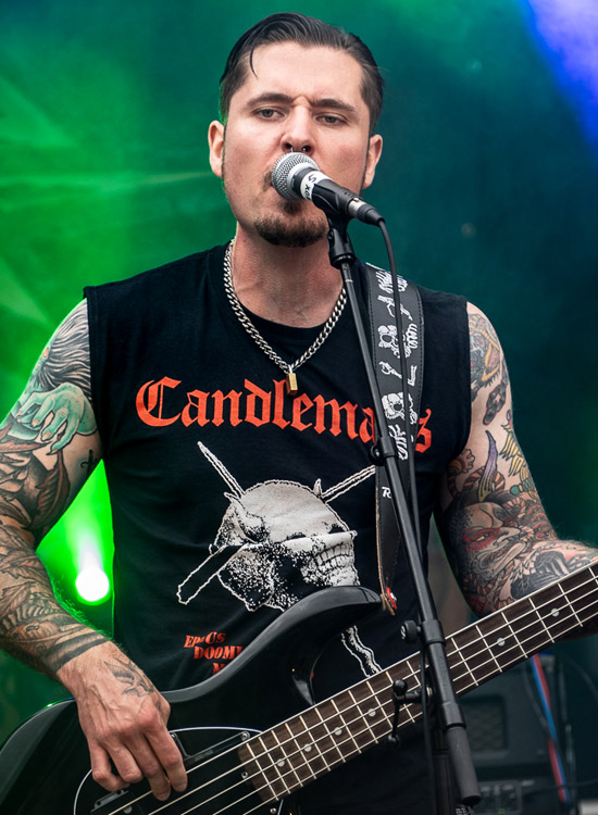 wütet bereits seit 30 Jahren und hat in dieser Zeit nicht weniger als elf Alben rausgehauen. Musikalisch wurde Blackened Death Metal geboten, dessen Riffs oftmals Assoziationen an die von SLAYER weckten. Auf der Setlist fanden sich 16 Songs, die von insgesamt neun Scheiben entliehen waren. Lediglich vom Debüt „The Christhunt“ (1992) und von „The Toxic Touch“ (2006) wurde nichts gespielt.