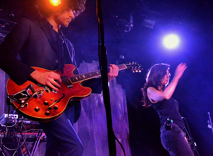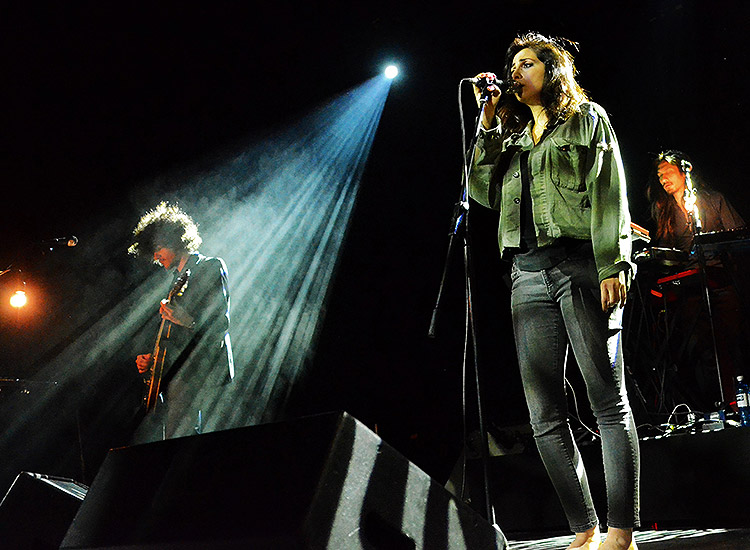 Batschkapp gönnte uns Hamdan, die vorher fast auschließlich mit geschlossenen Augen sang, ein paar erste Worte, in denen sie Jarmusch erwähnte, als sie eben diesen Song ankündigte (Videoclip dazu unten). Die Instrumente waren keine Staffage – oft verließen die Stücke die elektronische Klangwand, die sehr an den Trip Hop aus Bristol erinnerte und mutierten zum Psychedelic-Rock-Rausch, der auch unter den Freunden der „Sky High“-Konzertreihe in Frankfurt Anklang finden würde.