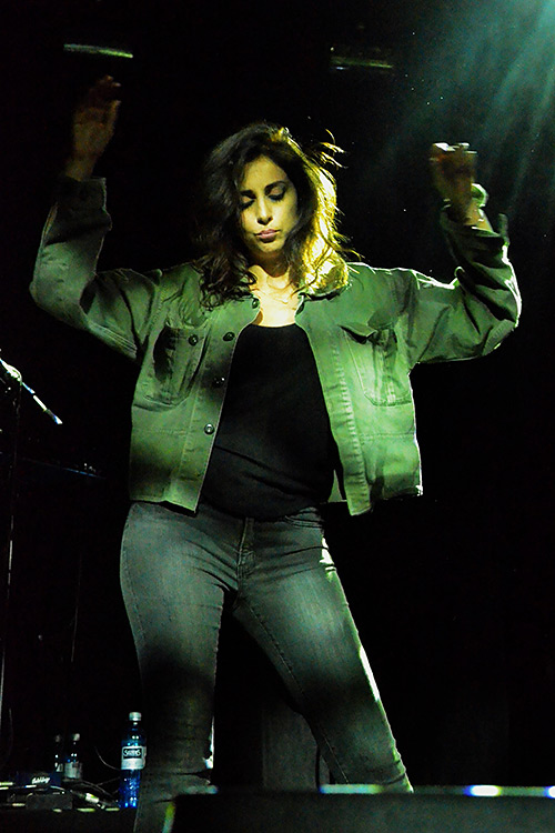 Eine wie auch immer geartete „Folklore“ fand nicht statt. Wieso auch? Der Sound auf den Alben „Ya Nass“ (2013) und „Al Jamilat“ (2017) ist elektronisch und gitarrenlastig, auf den Scheiben aber mehr Akustische als Elektrische. Songs, die verzaubern, einnehmen und begeistern. Pop? Ja, aber keiner, der sofort im Ohr hängen bleibt, sondern ein paar Durchläufe braucht. Das einzige, was in irgendeiner Art und Weise „folkloristisch“ gewesen sein mag (und da sei mir meine Unkenntnis verziehen, Schlauere dürfen mich gerne aufklären in der Kommentar-Spalte) war vielleicht das Formen eines halben Trichters mit der rechten Hand beim Singen. Könnte helfen, Töne auf eine gewünschte Art ins Mikro zu bringen und wurde von mir bisher live noch nie so gesehen.