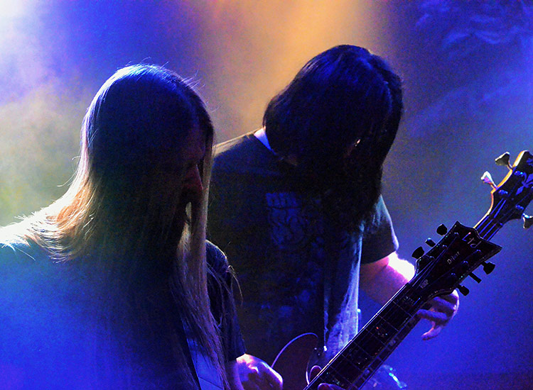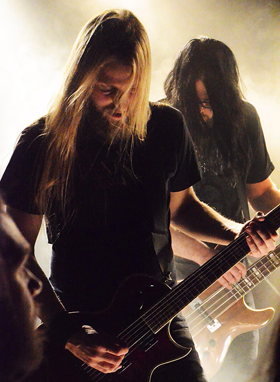 Diese füllten mit ihrer fünf Mann starken Besatzung die kleine Bühne schon ordentlich aus. Vokalist Eero Haula stand wie ein Fels in der Brandung und stieß tiefe, laaaaangsame Growls heraus, während seine Mitmusikanten es schafften, bei vollem Körpereinsatz Atmosphäre und Dynamik zu kreieren. Klingt vielleicht komisch, ist aber mehr als positiv gemeint. Zwei überlange Stücke und ein kurzes Encore (Videoclip weiter unten)