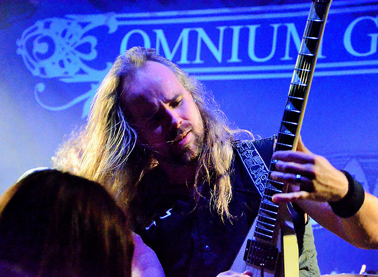 Nach der einzigen Umbaupause, die nicht ganz so glatt lief, kam der erste der beiden sich auf der Tour positionsmäßig abwechselnden Co-Headliner auf die Bretter: Die Finnen OMNIUM GATHERUM. Sie existieren seit 1996; ihr aktuelles, siebtes Album ist Platte des Monats im aktuellen Metal Hammer und