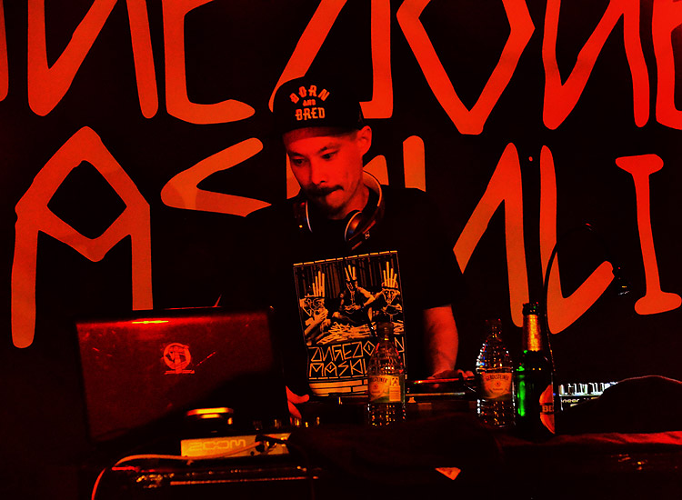 Verantwortlich dafür ist der dritte im Bunde, Kenji451, der nicht als offizielles Mitglied von ZM geführt wird, aber nicht nur mit auf der Bühne steht, sondern auch grim104s Soloalbum veredelte. Der sollte das Publikum im Frankfurter
